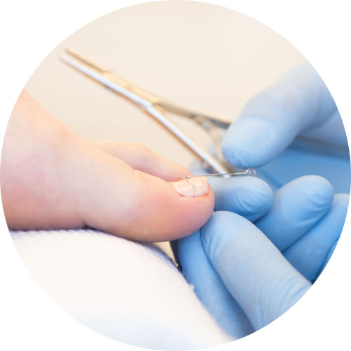 Neben der patientenbezogenen Ursachenanamnese ist eine schnelle Schmerzentlastung das Ziel der Behandlung. Hierbei bietet sich der schmerzarme und konservative Einsatz von Nagelkorrekturspangen an, durch die sich in den meisten Fällen eine schmerzhafte Operation vermeiden lässt. Ziel der Behandlung ist es, das natürliche Nagelwachstum wieder herzustellen und den Nagel dauerhaft vom Problem des Einwachsens zu befreien.
